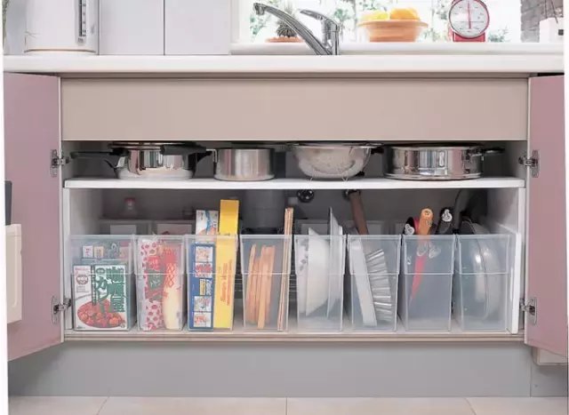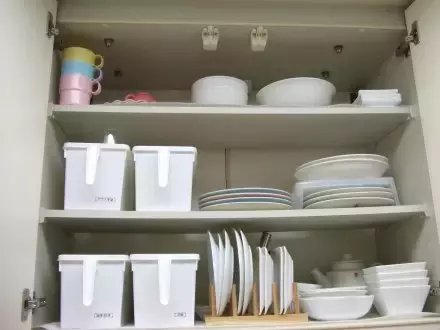 接下来进入到厨房里非常重要的一环,那就是食料收纳的问题。很多太太抱怨道自己的厨房里经常出没“小强”,其实都是因为清扫不干净与食料摆放不合理所导致的。所以,食料的收纳,刻不容缓!