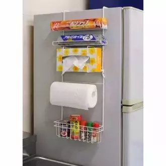 当然喜欢的话也可以将纸抽和保鲜膜斜挂在冰箱侧面。