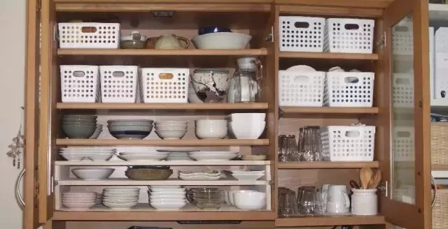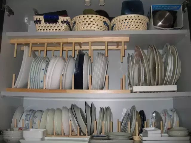 如果盘子罗列的较高,完全可以使用一些小的收纳神器。