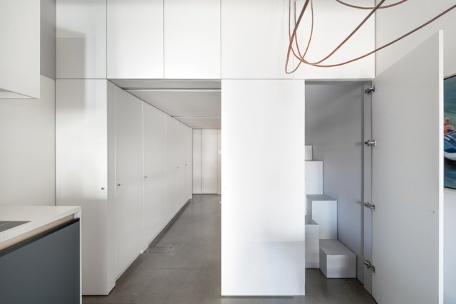 原来小户型可以这样节省空间,利用3.8米层高,餐厅上方藏卧室,关键隐藏设计也做得特别巧妙,打上环绕式柜子,不是做收纳,而是给内部隐藏一个楼梯间,不说真的没人知道这里有间卧室。