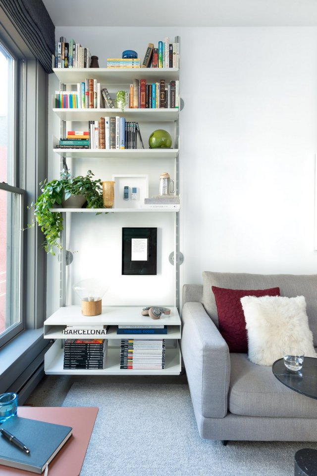 特地给沙发后面的墙面空间,做了留空处理,打上由上到下的书架,以为只是一个存放书籍的空间,其实还能当做一个小型的家庭图书馆空间使用。